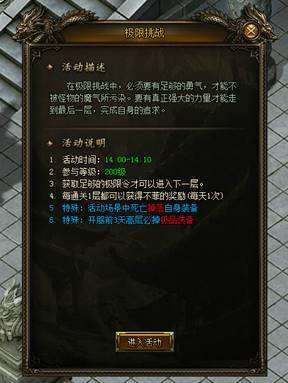 极限挑战开启时间:14:00、22:00,入口每次开放10分钟