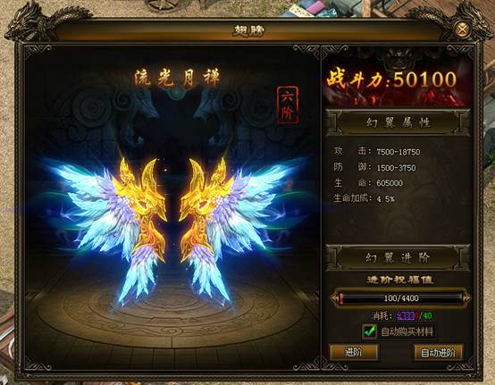 翅膀系统是一个非常强大的系统,升级的时候有着大量属性获得。而且外形会不停的变化,变的越来越酷炫。
